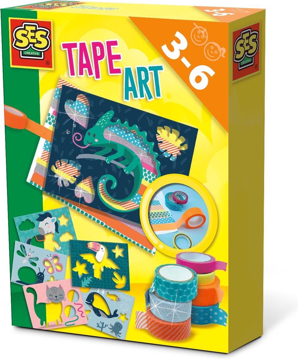 Tape het! Bedek de achtergrondkaarten met glinsterende, bedrukte en felgekleurde tape stroken en plaats de voorgesneden afbeeldingen er bovenop. Een gemakkelijke activiteit met verbluffende resultaten!