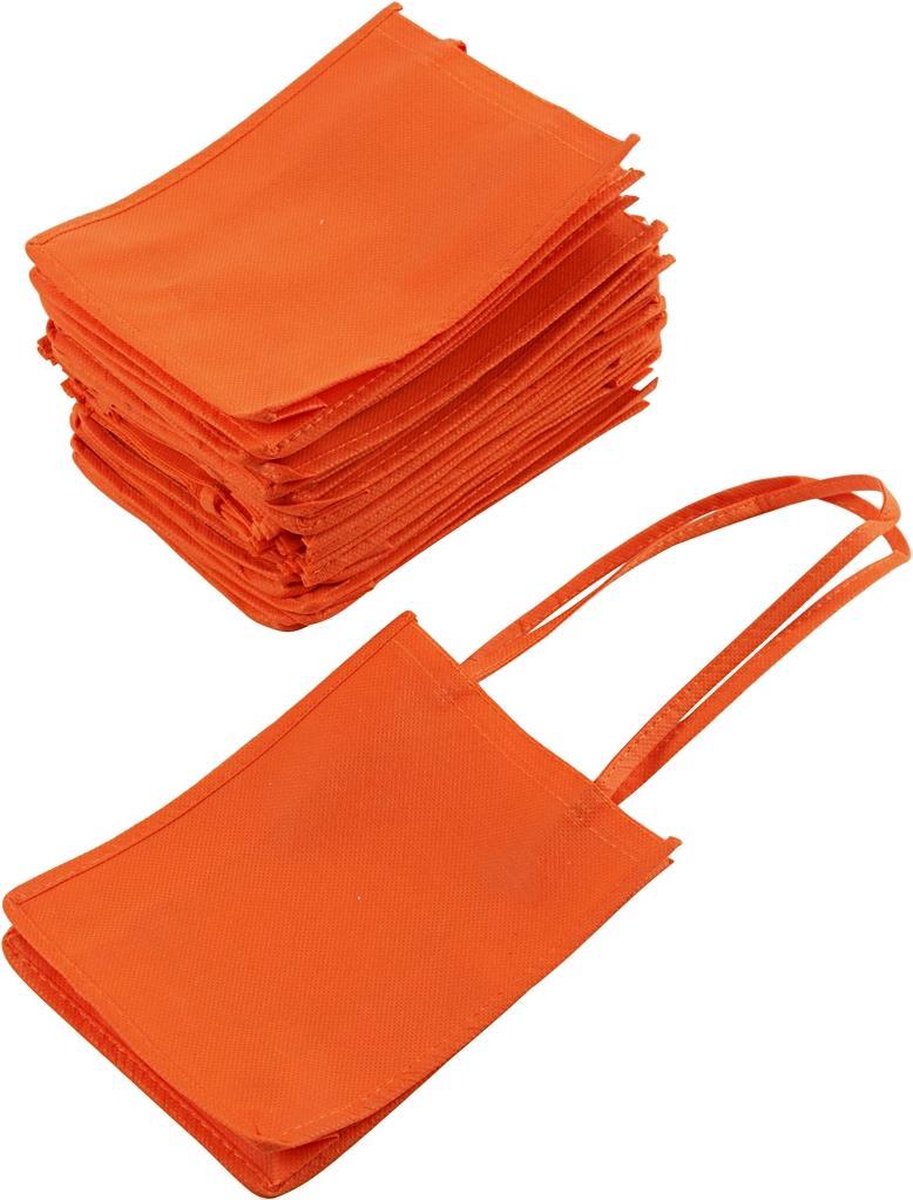 Tas (20 stuks) Kleine tas van imitatiestof met schouderlange hengsels. Kan gedecoreerd worden met textielstiften en gebruikt worden voor 'trick or treat'.