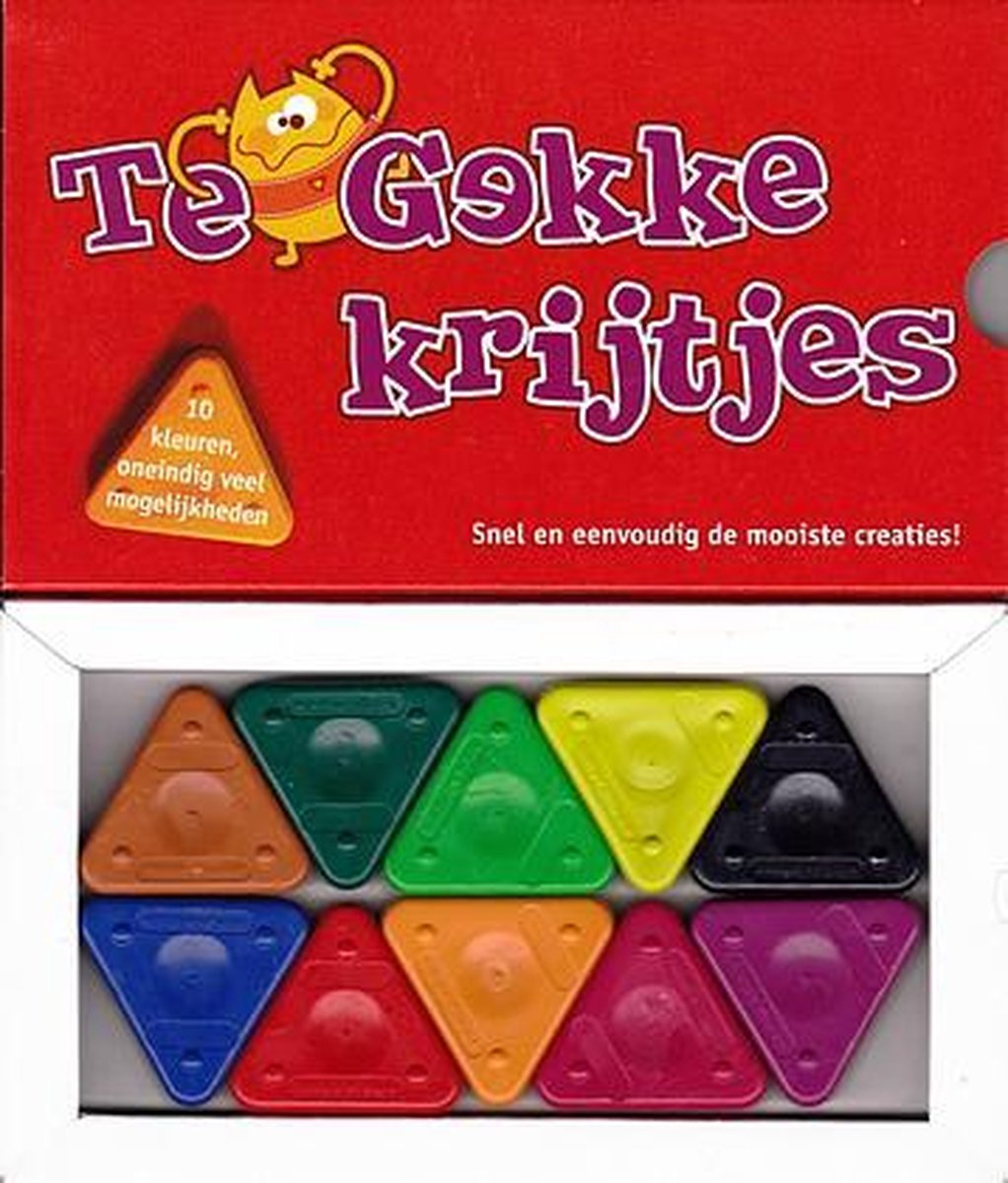 Met de Te Gekke Krijtjes maak je snel en eenvoudig de mooiste creaties. Door de driehoekige vorm zijn ze makkelijk vast te houden door groot en klein, links- of rechtshandigen. De krijtjes zijn o.a. gemaakt van bijenwas, geven niet af, hoeven nooit geslepen te worden en gaan lang mee. Heel belangrijk is ook dat de krijtjes niet giftig zijn dus niet schadelijk voor de gezondheid. Er zijn ontelbaar veel mogelijkheden om met deze krijtjes de leukste ontwerpen te maken. Zo kun je er bijvoorbeeld mee reliëftekenen. Alles met reliëf kun je hiervoor gebruiken, bijvoorbeeld boombladeren, stukjes zeil, stof, behang, uitgestanste figuurtjes, zelf uitgeknipte vormen en sjablonen. Het is heel simpel. Je legt iets met reliëf onder een vel papier en strijkt met de krijtjes er over heen. Het resultaat zal al met 1 beweging te zien zijn. Door meerdere kleuren over elkaar heen te gebruiken krijg je een schitterend effect. Wat de krijtjes nog bijzonderder maakt is dat je er ook mee kunt verven.