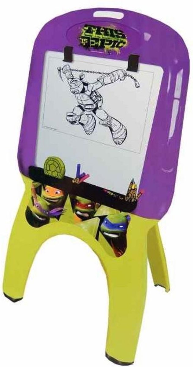 Is jouw kleintje helemaal weg van de Ninja Turtles en speelt en schrijft hij graag samen met zijn vrienden, dan is deze tekenset en tekenbord het ultieme speelgoed. Met zijn hoogte van 107cm valt er enorm veel te tekenen en zorgt voor urenlang speelplezier. Samen met Leonardo, Michelangelo, Donnatello en Raphael beleven ze de dolste tekenavonturen. Het Teenage Mutant Ninja Turtle schrijf, teken en magnetisch whiteboard inclusief Art & Craft set, twee paperclips en twee handige opbergvakken komt in een handige verpakking. - Ultiem cadeau - Magnetisch tekenbord - Inclusief Art Set