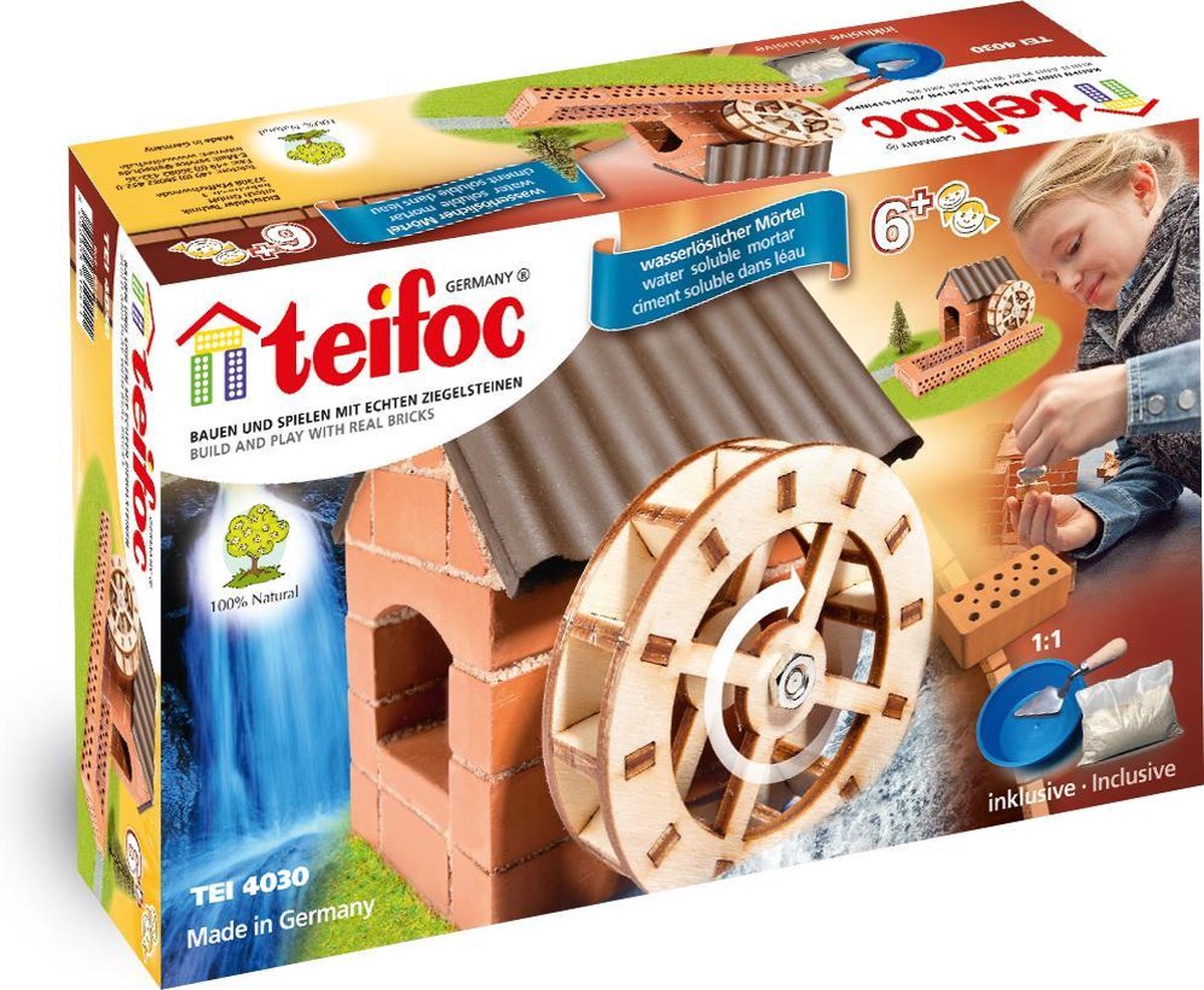 Met Teifoc leer je bouwen met echte bakstenen en cement van 100% natuurlijk materiaal. Bouw en speel met deze mooie watermolen. De set is inclusief een bouwinstructie en alle benodigdheden om het model te maken. Spelen met Teifoc bevordert het vermogen om logisch en ruimtelijk te denken bij kinderen. De motoriek, creatieviteit en leervermogen worden door het driedimensionaal bouwen gestimuleerd.
