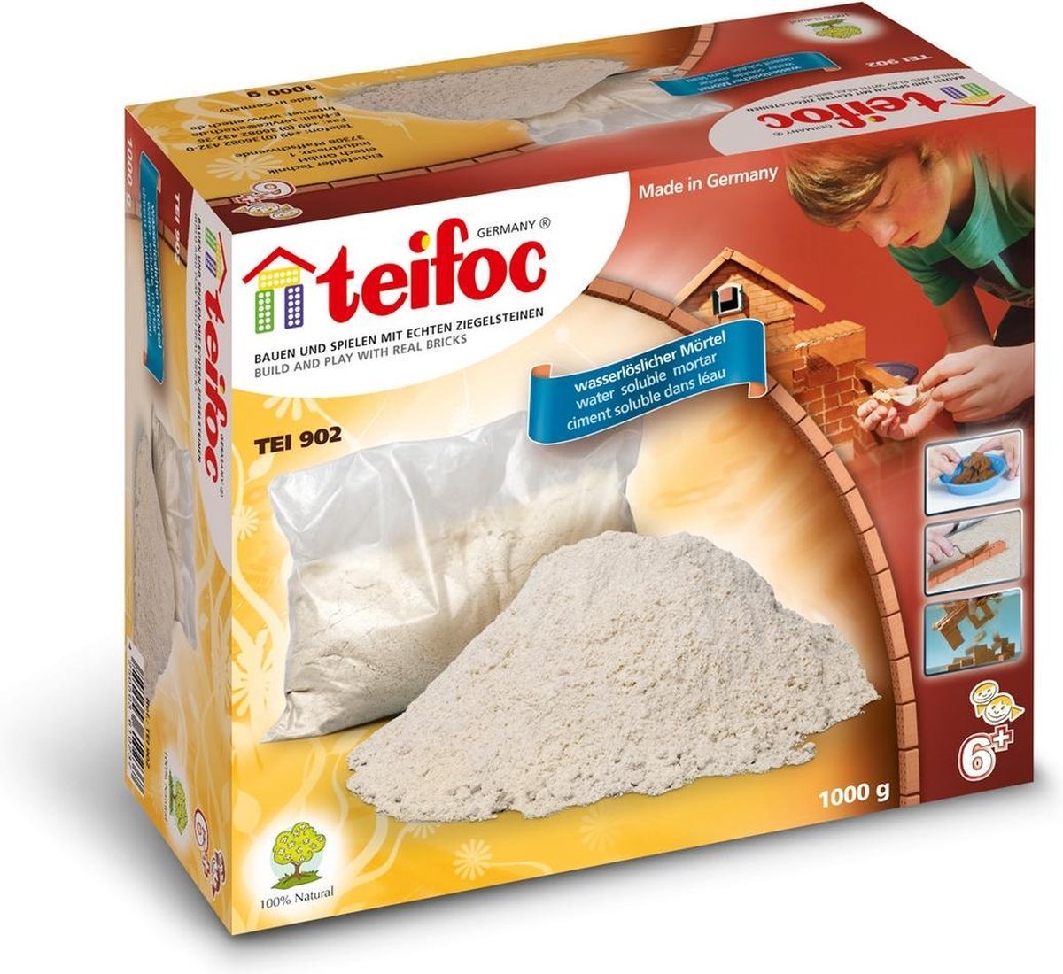 Cement voor nieuwe bouwwerken met de Teifoc bouwsten! Met de TEIFOC bouwdozen kunnen kinderen echte bouwwerken maken. Spelen met Teifoc bevordert de fijne motoriek en het vermogen om logisch en ruimtelijk te denken. De producten zijn geschikt voor kinderen vanaf zes jaar en dankzij de 100% natuurlijke materialen zeer veilig. De kleine architecten vinden alles wat nodig is in de bouwdozen; een gedetailleerde instructie, sjablonen, cement kom, troffel en cement.
