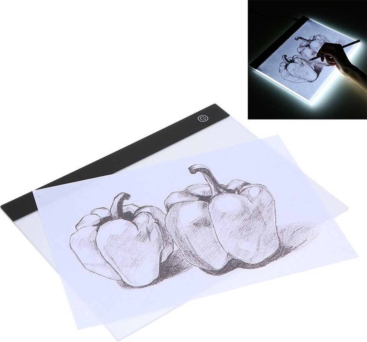 235 bij 330 millimeter Gemaakt van hoogwaardig acryl Met USB-aansluiting Met drie verschillende standen Slimme geheugenfunctie Maak de mooiste tekeningen met behulp van dit tekenbord met ingebouwd licht. Het bord verlicht je papier van de achterkant, waardoor je iedere lijn haarscherp ziet, ook als het donker is. Met een afmeting van 235 bij 330 millimeter, is het tekenbord perfect voor papier van A4-formaat. De bovenste plaat is gemaakt van hoogwaardig acryl dat goed is in het doorlaten van licht. Je kunt het tekenbord opladen dankzij de USB-aansluiting. Koppel hem aan een powerbank, je computer of een oplader om de accu op te laden. Je hebt altijd het juiste licht dankzij de verschillende standen op het tekenbord. Zo kun je de helderheid op drie verschillende standen zetten. Hierdoor weet je zeker dat je de juiste omgeving creëert om te tekenen, zonder dat je ogen last krijgen van het licht. Zo is een minder helder licht ideaal op donkere avonden. Het bord heeft bovendien een
