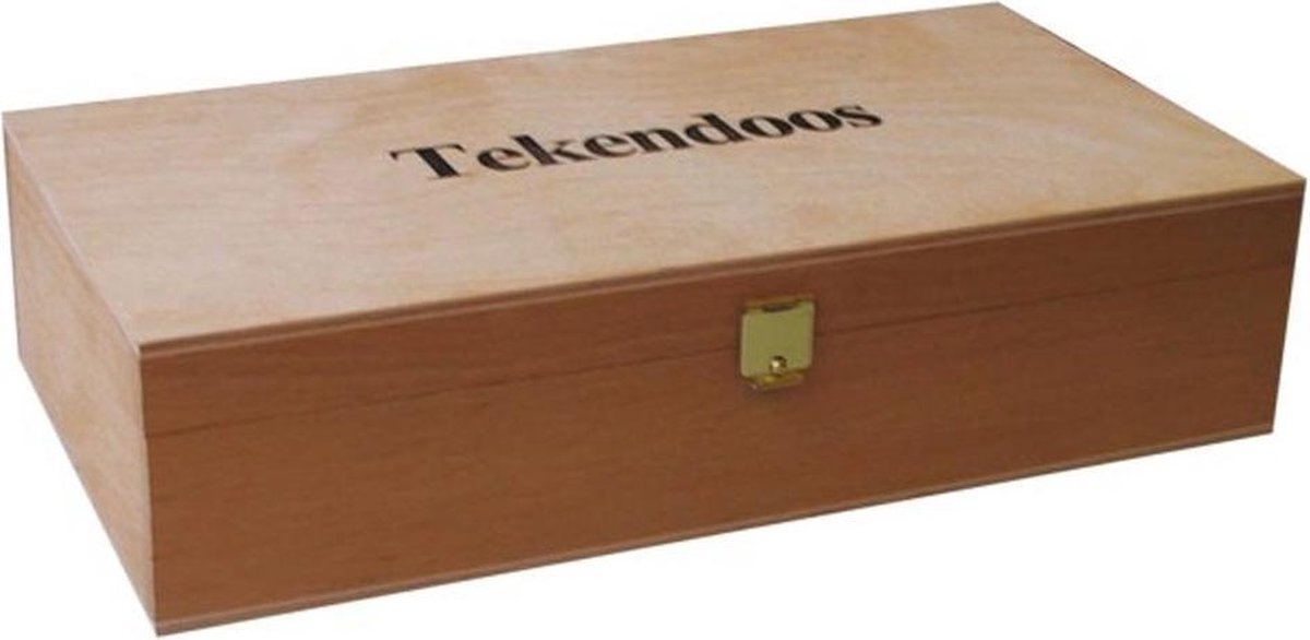 Tekendoos van hout met een 3-vaks indeling.Afmeting24x 12,5 x 6 cm.