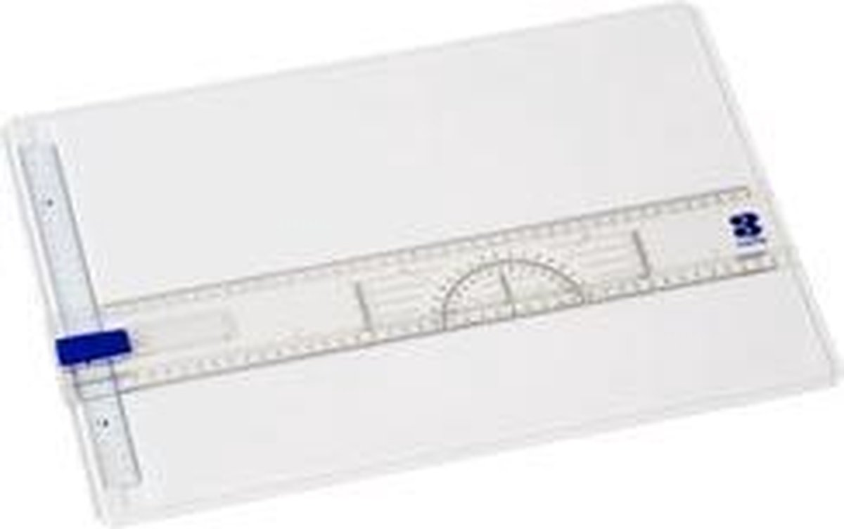 Enorm stevige plastic tekentafel (A3-formaat) met mobiele parallel te bewegen lat Deze tekenplank wordt geleverd met een kartonnen draagtas Afmetingen: 47 x 33,5 cm