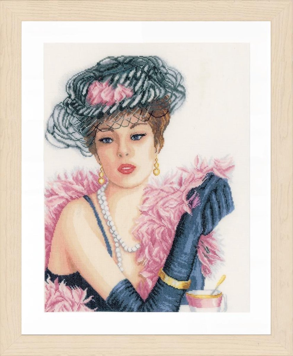 Telpakket kit Elegante dame , Steken: Franse knoop, Halve kruissteek, kruissteek, Spansteek, Stiksteek