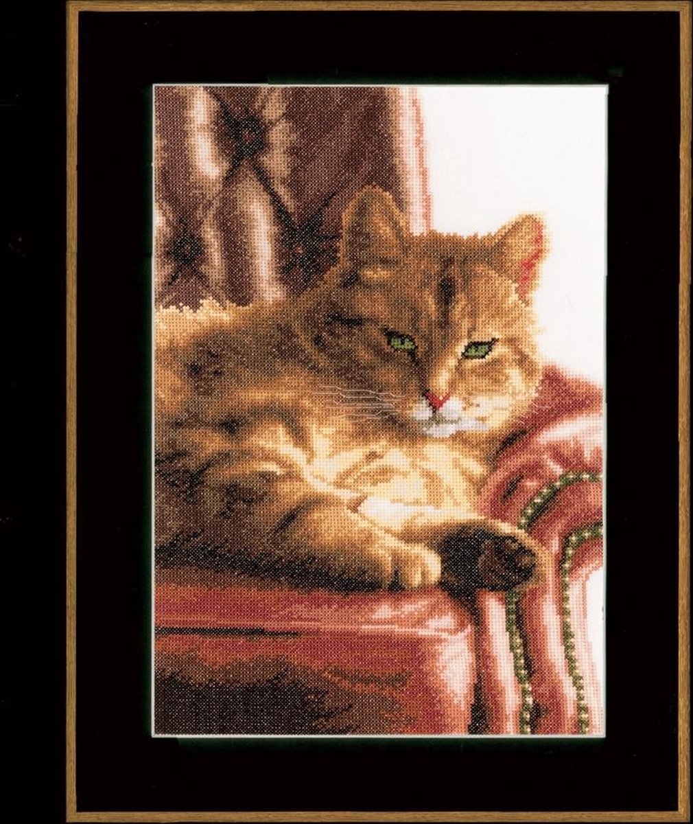 Telpakket kit Luierende kat , Steken: kruissteek, Spansteek