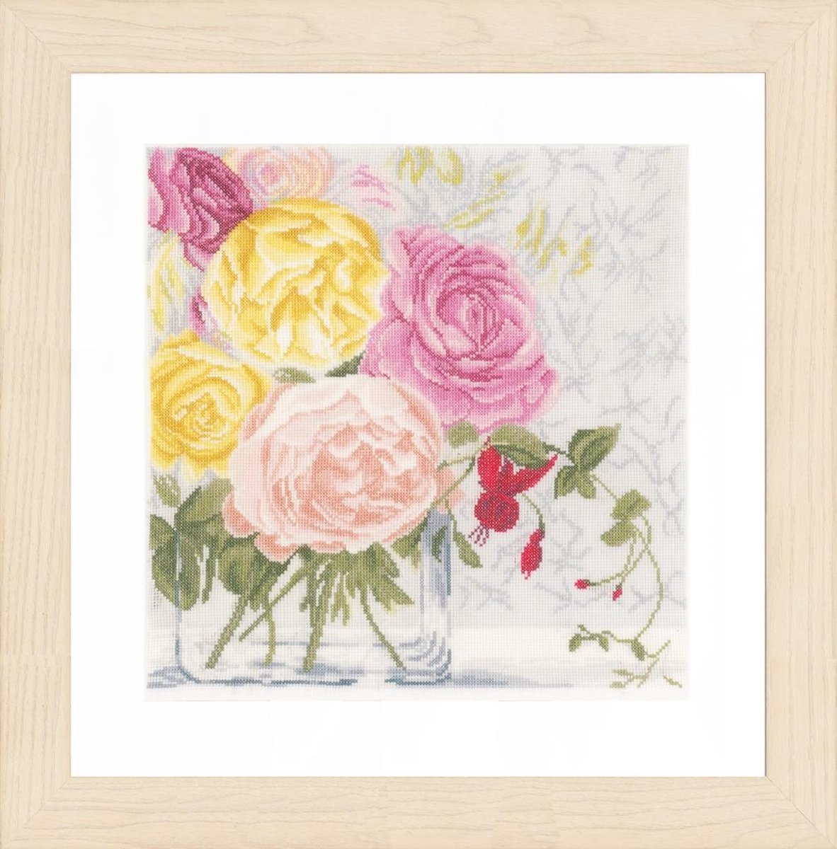 Telpakket kit Pastelbloemen in vaas , Steken: kruissteek