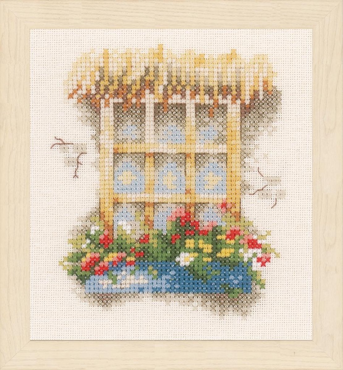 Telpakket kit Raam met bloembak , Steken: kruissteek, Stiksteek