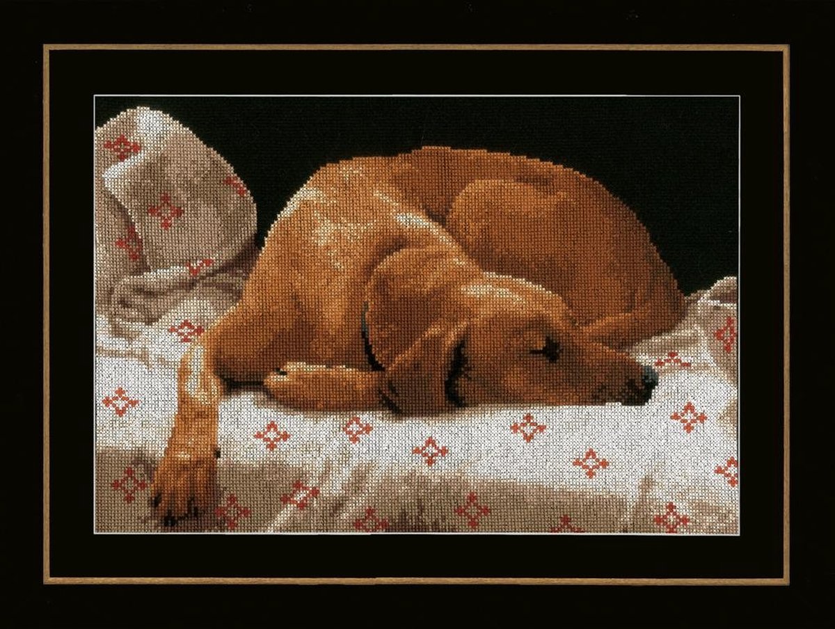 Telpakket kit Slapende hond, Steken: kruissteek