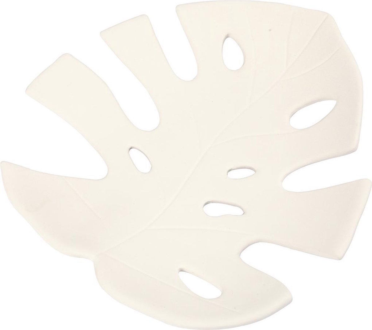 Ronde schaal gemaakt van terracotta in de vorm van een monstera blad.Ronde schaal gemaakt van terracotta in de vorm van een monstera blad.