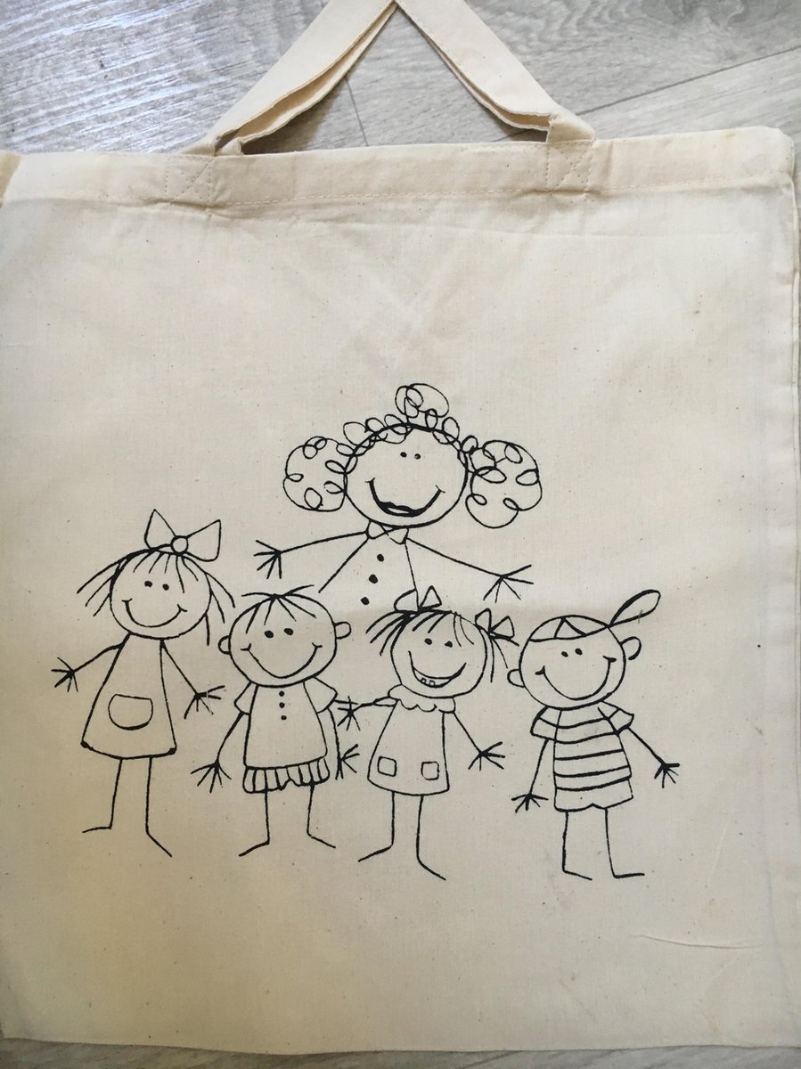 Een perfecte 100% katoenen tas om in te kleuren of te schilderen. Deze tas bewerken is een leuke activiteit voor de verjaardag van een kind en de tas is een handig cadeau en een leuk souvenir. Met de aankoop en het gebruik van deze katoenen tas levert u een belangrijke bijdrage aan het milieu en duurzaam gebruik van grondstoffen. Er zijn oneindig veel mogelijkheden voor het ontwerpen van deze persoonlijke tas. U kunt de tas ook op de achterkant borduren, er textielmotieven op naaien, deze versieren met de servettechniek, enz. De afmetingen van de tas zijn 38 x 42 cm en heeft een kort handvat.