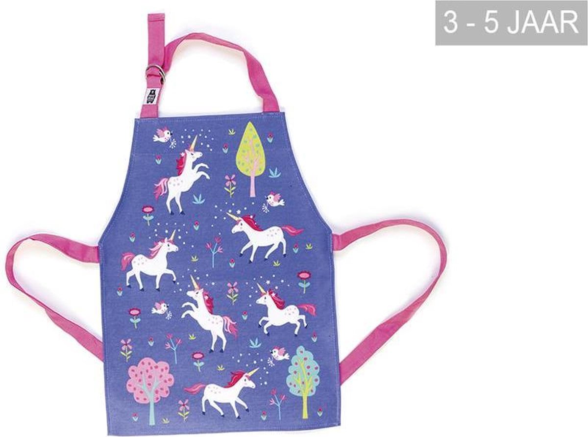 ThreadBear schort Een gecoatte katoenen schort met verstelbare nekbanden van sterk, dubbellaags panama katoen. Een D-ring maakt aanpassing mogelijk. Aan de binnenzijde van de nek is er een plek om je naam te schrijven! Een verzameling van magische mysterieuze eenhoorns, die door een bloemenweide heen pronken, en die een wonderbaarlijke creativiteit op een paarse schort inspireren. Specificaties: Kleur: multicolor Geslacht: junior Materiaal: katoen, polyurethaan Afmetingen: 45 x 33 cm Leeftijd: van 4 tot 6 jaar