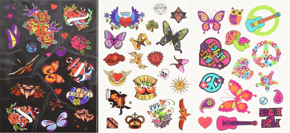 Toi-Toys tattoo stickervel met glow Maak indruk op al jouw vrienden deze leuke tattoos. De tattoos zijn makkelijk aan te brengen met water en een sponsje. Specificaties: Kleur: roze Geslacht: junior Materiaal: papier Afmetingen verpakking: 36 x 20 cm (L x B) Leeftijd: vanaf 5 jaar