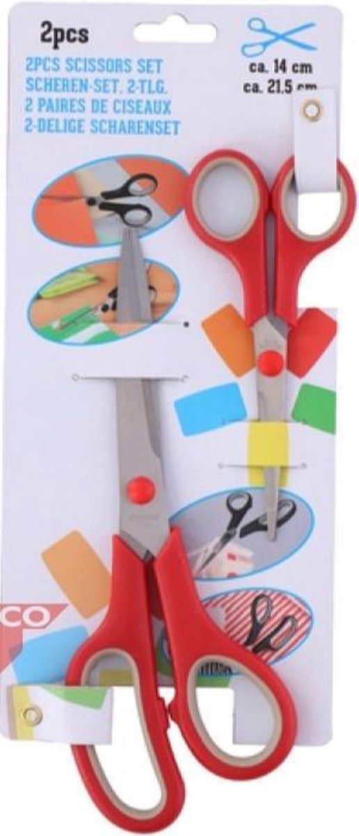 TOM schaar Voor de echte creatieveling. Deze set bestaat uit twee scharen, de een voor normaal knippen en de andere om wat kleinere dingetjes te kunnen knippen. Specificaties: Geslacht: junior, unisex Materiaal: roestvrij staal/kunststof Kleur: rood Leeftijd: vanaf 8 jaar