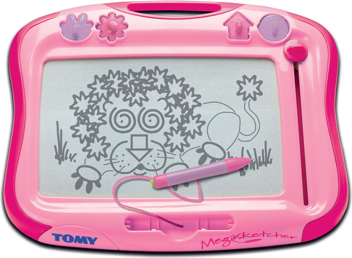 Maak je eigen tekeningen en versier met de 4 stempels deze roze Megasketcher. Met de pennen kun je zowel dikke als dunne lijnen tekenen. Met de schuifknop aan de zijkant kun je je tekening wissen en opnieuw beginnen. Geweldig speelgoed voor beginnende kunstenaars thuis en onderweg: in de auto, het vliegtuig of de trein. Bevat: 1 tekenbord, 4 stempels en 1 megasketcher pen.