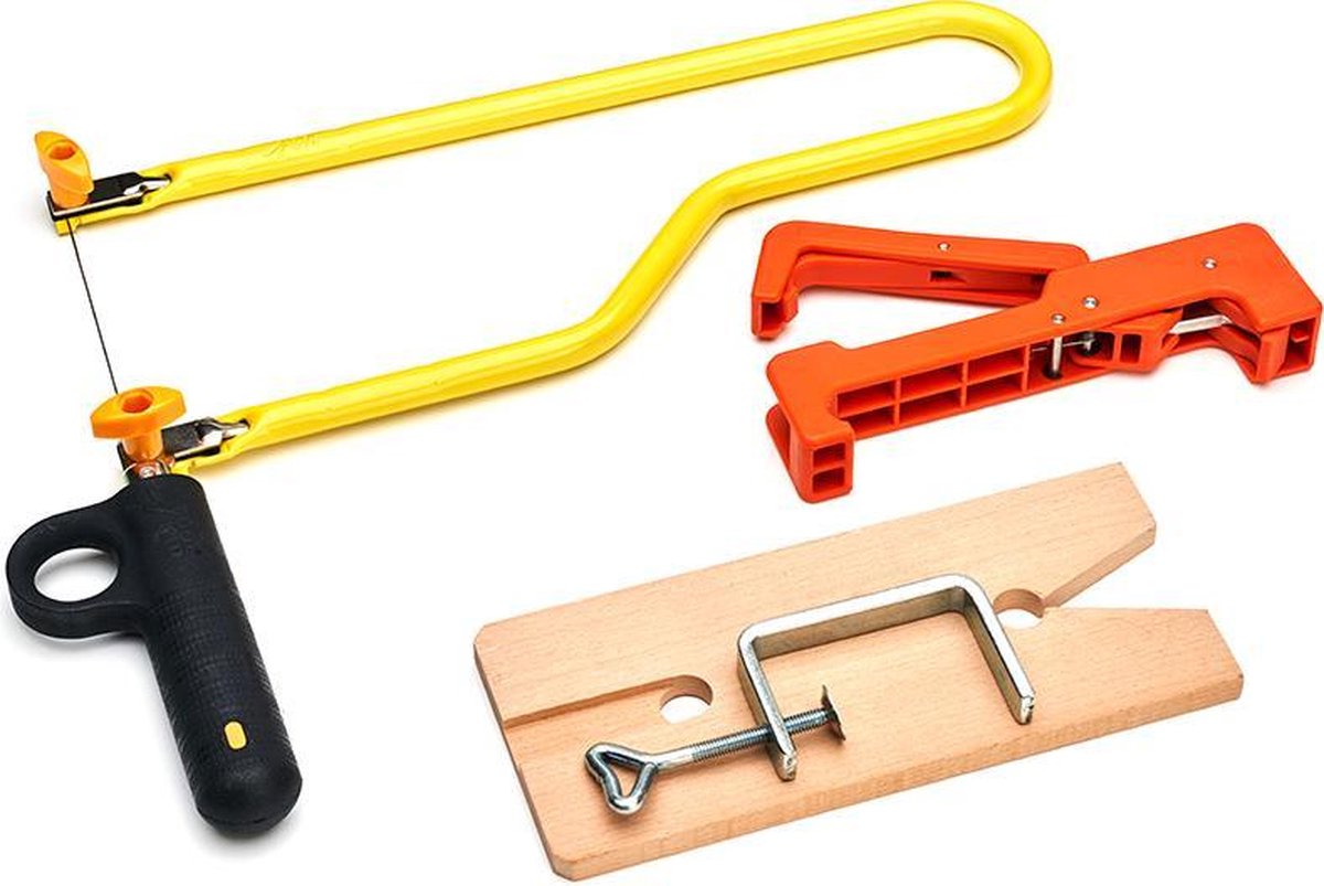 Productbeschrijving: Een complete set met de innovatieve figuurzaag, plankje met klem en figuurzaagspanner om de mooiste vormen te figuurzagen! De set bestaat uit: Figuurzaag met ergonomisch aangepaste beugel en handvat met pistoolhandgreep voor meer grip en betere sturing van de zaag Figuurzaagspanner waarmee je kind zelf figuurzaagjes kan inzetten Figuurzaagplankje met groter werkvlak en bijbehorende klem. Download de gebruiksaanwijzing: https://toolkid.com/downloads/toolkid-gebruiksaanwijzing-voor-kinderen.pdf