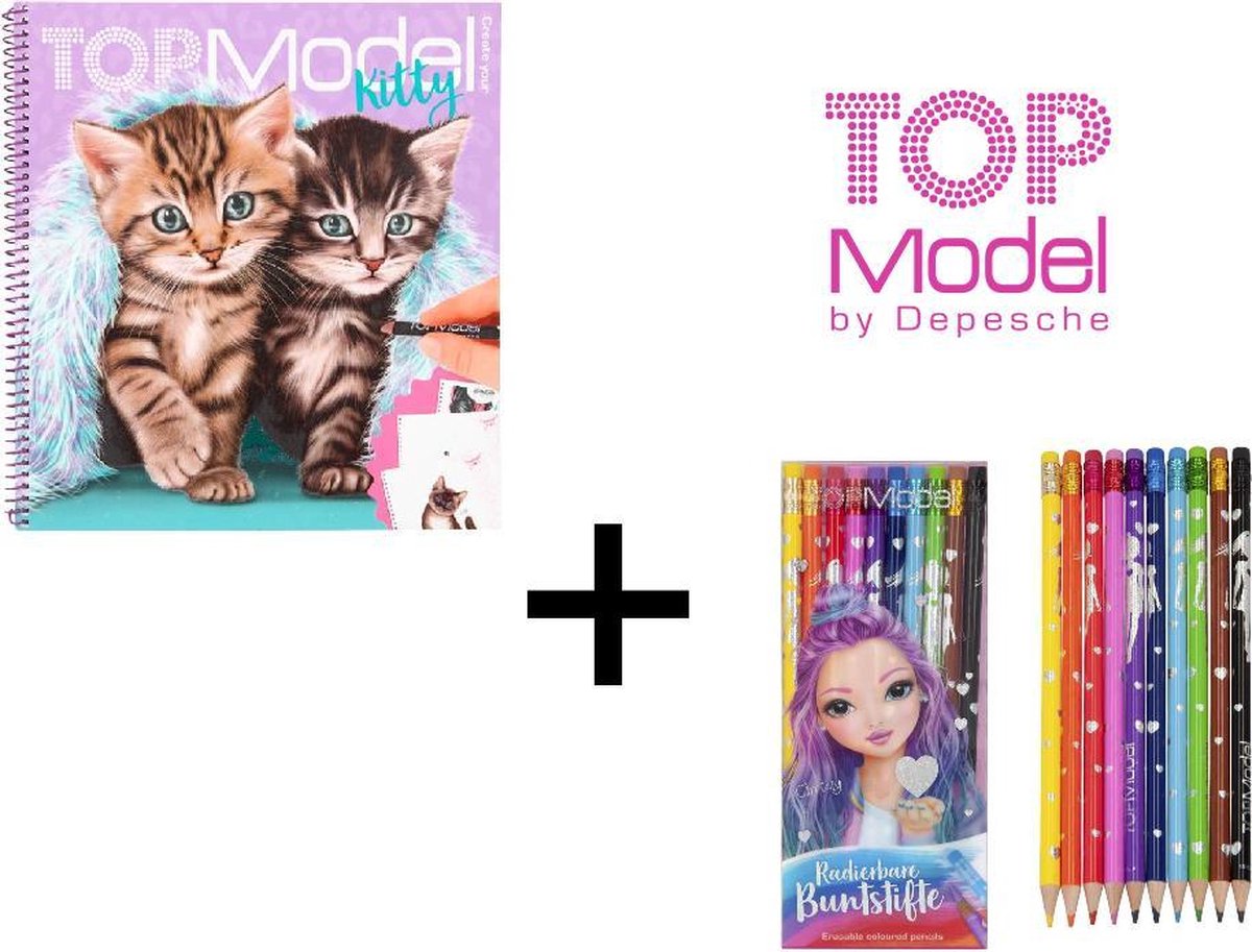Gewoon MIAUW, uh, WOW! Dit kleurboek is echt kittyschattig! Op 92 pagina's vind je heel veel toffe afbeeldingen van katten die er op wachten om door jou ingekleurd te worden of met de drie bijbehorende stickervellen beplakt te worden en tot leven te komen. Dus potloden in de pootjes en beginnen maar! + Nu wordt het kleurrijk: met deze tien kleurpotloden worden alle TOPModels, hun coole outfits en je eigen fantasievolle tekeningen schitterend! En het beste: dankzij de gum die er als topper opzit, kun je elke foutje makkelijk weer uitgummen! So cool! Kleuren: geel, oranje, rood, roze, paars, donkerblauw, lichtblauw, groen, bruin & zwart. Kleurpotloden Lengte: 0.9 cm Breedte: 8 cm Hoogte: 19.2 cm Gewicht: 0.072 kg Leeftijdsadvies: 5 TopModel Kitty kleurboek Lengte: 1.5 cm Breedte: 20.2 cm Hoogte: 22.2 cm Gewicht: 0.322 kg Leeftijdsadvies: 5