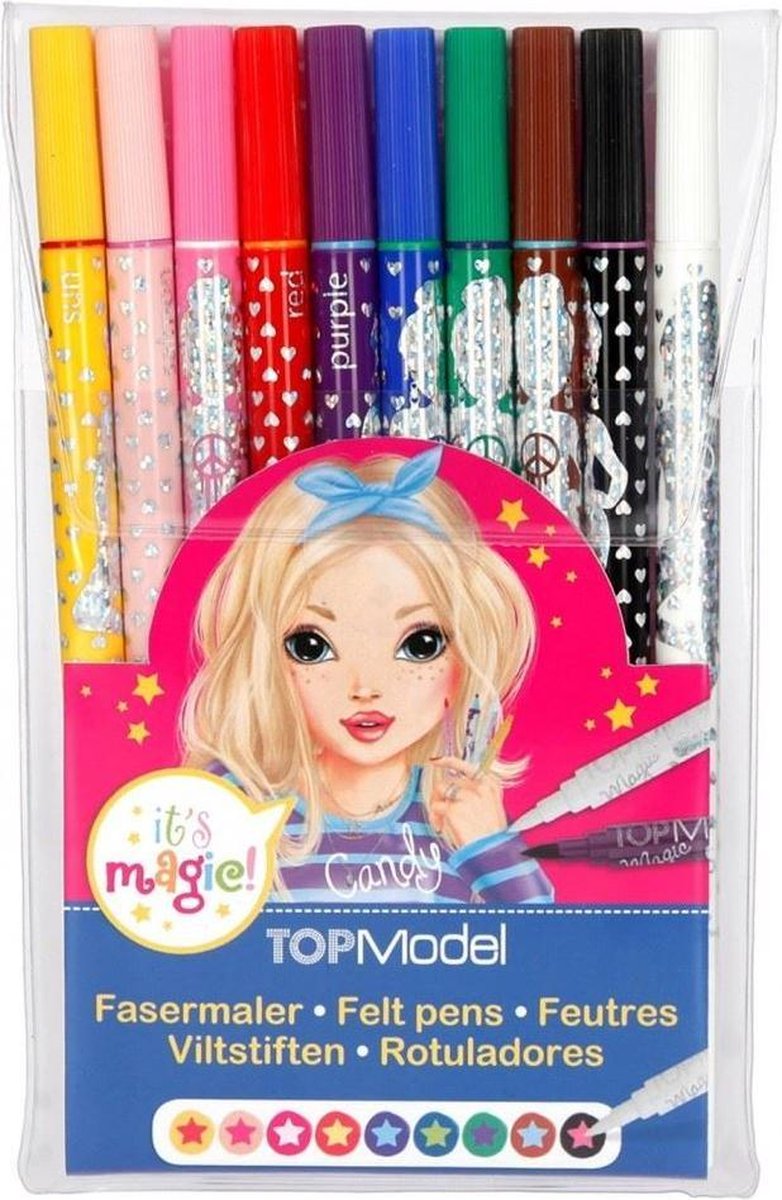 Met deze TOPModel magische viltstiftenset lijkt het wel of je kunt toveren. Want deze set bevat naast 9 normale vilstiften 1 magisch exemplaar. Deze laat met 1 aanraking een kleur totaal veranderen. Zo maak je bijna zonder moeite de mooiste accenten in je tekeningen!