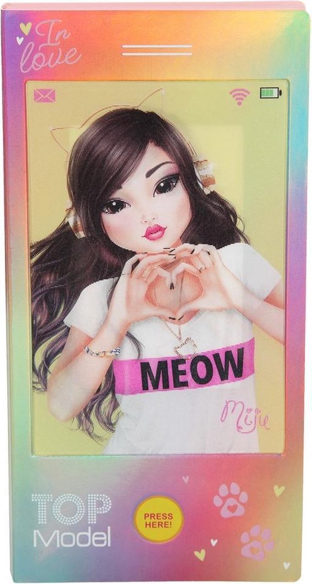 Wat past er in de zak van je jas en maakt met een druk op de knop muziek? Een telefoon?!? Bijna: een TOPModel kleurboek in de look van een telefoon met geluid en 80 pagina's om coole outfits te ontwerpen! Druk je op de knop op de cover, hoor je ca. 20 seconden lang de hit "Here with me". Je kunt nu tekenen en naar muziek luisteren. Hoe cool is dat?!