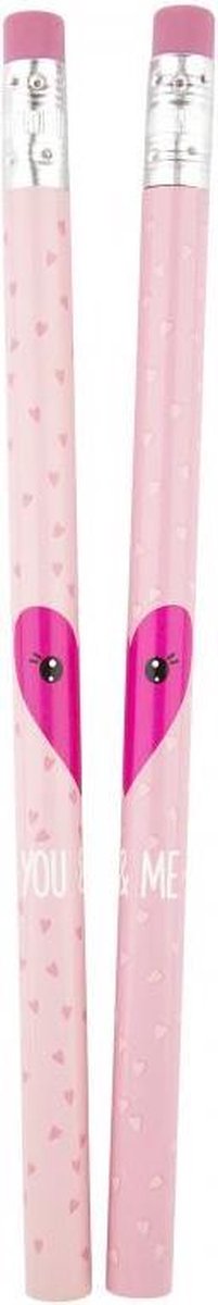 Het leukste is het toch om te delen met je beste vriendin - zelfs je potloden. Twee BFF potloden HB (dikte Ø 10 mm) met gumtopper in een transparant tasje, potlood met hart, tasje met print.