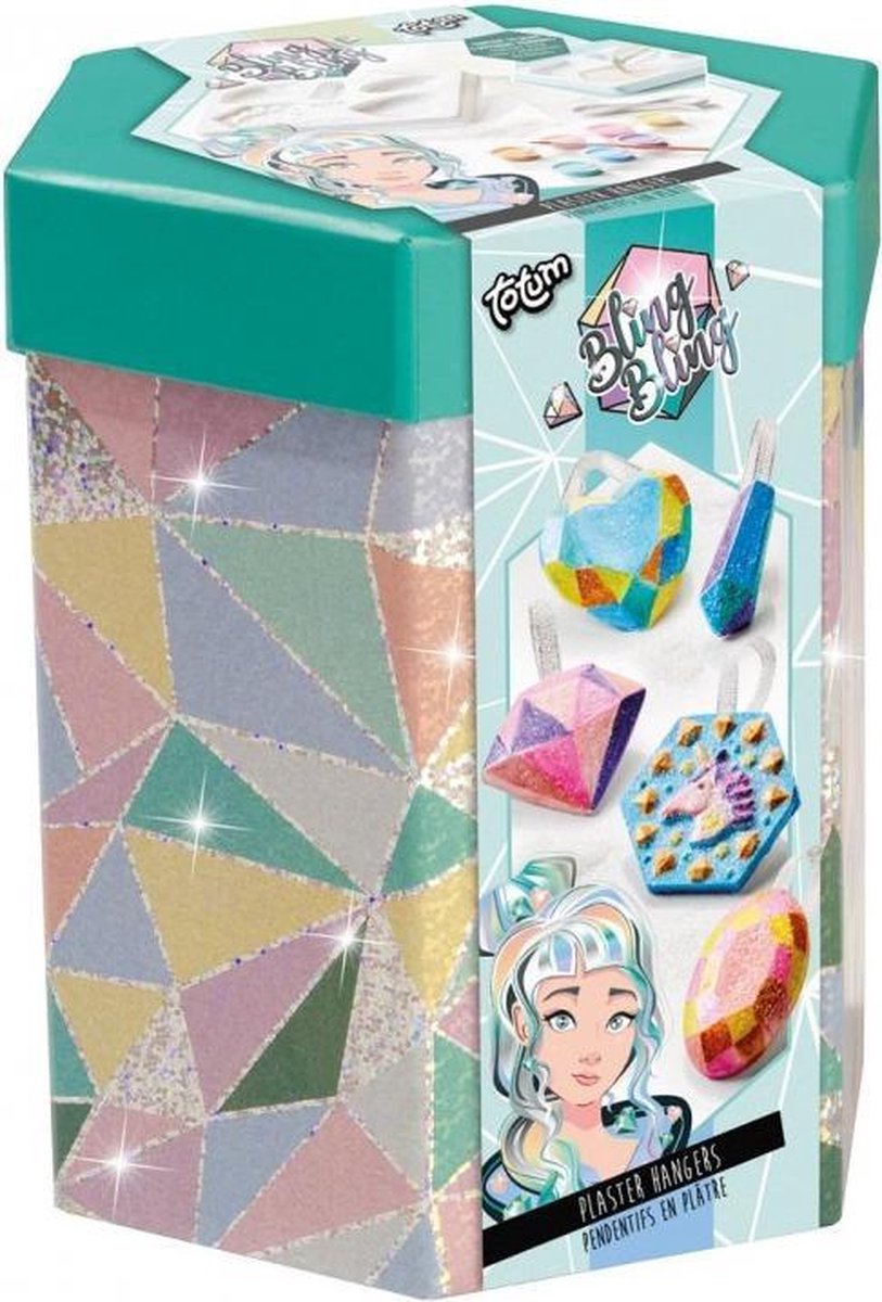 Maak je eigen gips creatie van diverse edelstenen. De diamanten kun je laten schitteren door ze te verven en te versieren met glitterpoeder. Het doosje kun je achteraf nog als vaasje gebruiken door er enkele mooie takken in te zetten en deze met je creaties te versieren. Welke kleurencombinaties ga jij maken ? - vanaf 6 jaar - complete set inclusief gips en mal voor 4 verschillende vormen - inclusief verfstrip met 6 kleuren en penseeltje - in luxe 6-hoekige bewaarkoker met groentinten en metallic glitter afwerking - leuk creatief cadeau - trots op je resultaat ! In de Bling Bling serie van Totum vind je 9 verschillende artikelen in 3 formaten en 3 trendy kleurstellingen. Alles gebaseerd op edelstenen en diamanten. Kies jouw favoriete activiteit of verzamel ze allemaal.