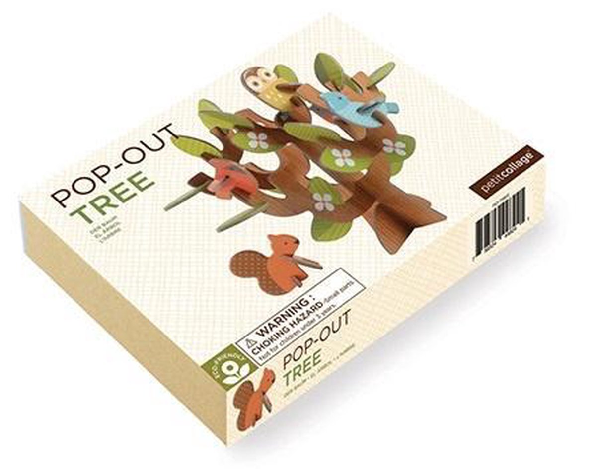Petit Collage Pop-Out Deze uitdrukbare boom is gemaakt van dik karton. Elk onderdeel heeft enkele stukken die in elkaar gezet moeten worden. Dit is zeer eenvoudig, alles wat er moet gebeuren zijn de onderdelen in elkaar schuiven. De boom zijn mooi voor op tafel of om de kamer te versieren. In de doos zit materiaal voor een boom, een eekhoorn en drie vogels. Inhoud: 4 kaarten met figuren Afmeting: 19 x 14 x 3 cm