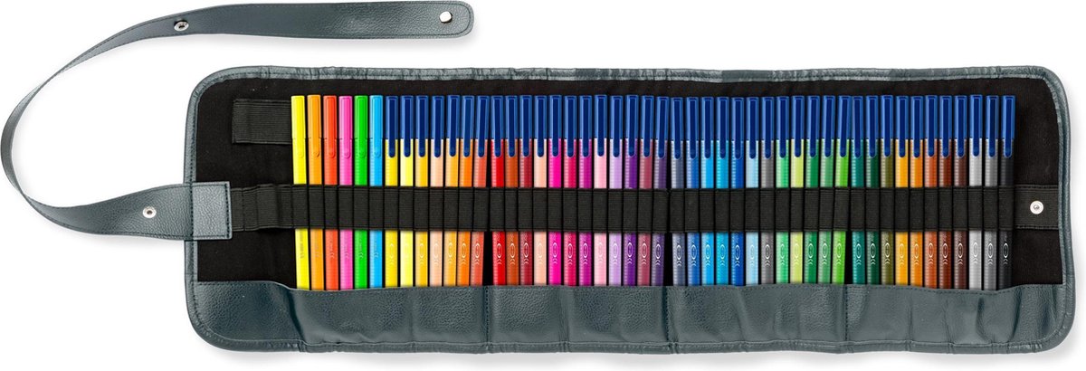 STAEDTLER triplus color - Roll-up etui met 48 kleuren Ergonomische, driekantige viltstift om ontspannen en zacht te kleuren Stabiele, drukbestendige punt Geventileerde dop DRY SAFE - kan dagenlang open liggen zonder uitdrogen Inkt op waterbasis Uitwasbaar uit de meeste textielsoorten PP lichaam en dop voor een lange levensduur Lijnbreedte ca. 1,0 mm De Mix&Match formule zorgt ervoor dat de kleuren perfect overeenstemmen met die van de triplus fineliner