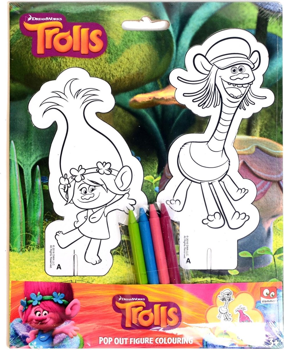 Breng de Trolls Poppy en Cooper tot leven met deze Pop-up figurenset. Kleur de figuren in met de bijgeleverde waskrijtjes en zet de onderdelen in elkaar. In de set vind je 2 complete Trolls figuren van stevig karton en 4 gekleurde waskrijtjes.