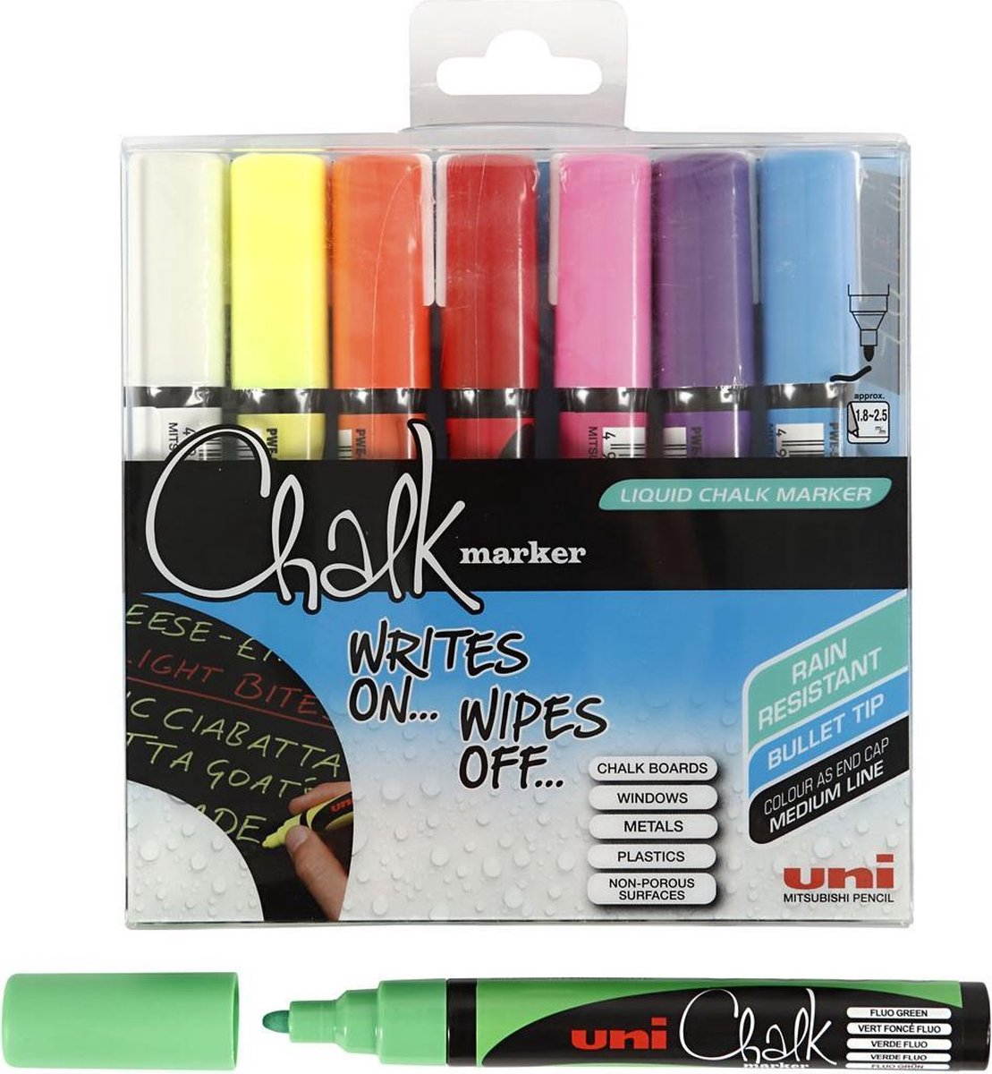 Uni-Ball Krijtmarker set - 8 kleuren 1,8-2,5 mm krijtstiften - Geschikt voor tijdelijke toepassingen, zoals op horeca borden, hobby, diy, etc