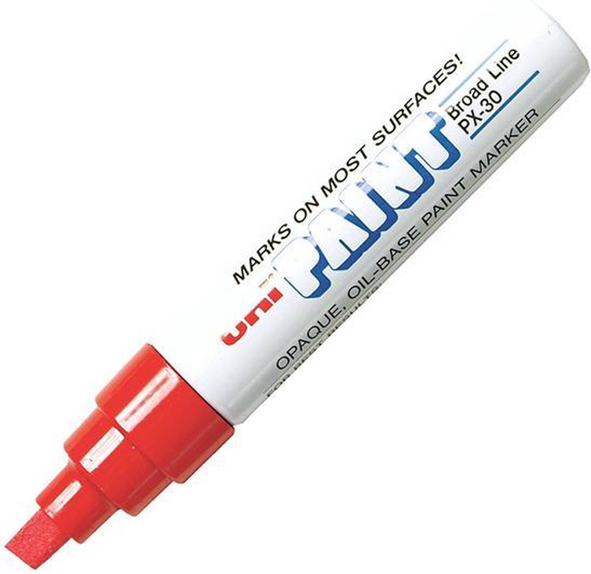 Posca PX-30 Paint Marker De POSCA UNI PX30 is een klassiek industrieel verf marker die jarenlang een favoriet is voor kunstenaars en graffiti-schrijvers uit de hele wereld. Met een gecomprimeerde mohair penpunt en ultra-soepele flow, is dit product ontworpen voor duurzaamheid op bijna elk oppervlak. Voeg daar nog de UNI PX-30 olie-gebaseerde ultra permanente inkt aan toe - en je hebt een van de beste industriële kwaliteit, schrijft over alles wat verfmarkers gemaakt hebben. Uniball paint marker is een verfstift op oliebasis. De marker is geschikt voor vele ondergronden zoals; glas, papier, ceramiek, plastic of metaal. Ook zijn de markers goed te combineren met bijvoorbeeld de Uni Chalk Marker of de Edding Chalk Marker. - Paint marker px-30 beitelpunt, 4 - 8,5 mm