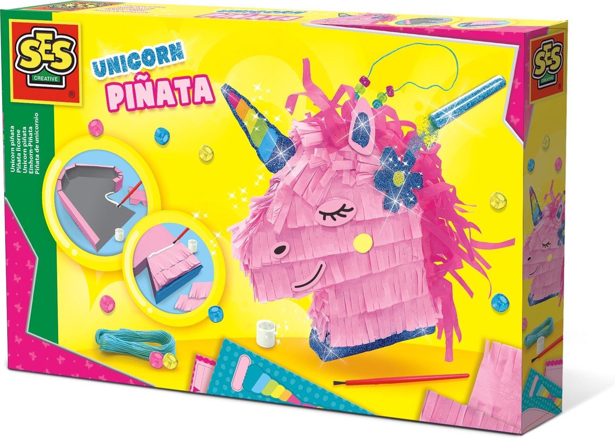 Deze vrolijke piñata in de vorm van een unicorn is leuk voor elke feestelijke gelegenheid of speciaal moment. Vul de piñata met de meegeleverde kraaltjes of vul hem met snoepjes, confetti of kleine cadeautjes. Hang de piñata op en het feestje kan beginnen! Of laat je creatie lekker heel en hang hem in je kamer als stijlvolle decoratie! De afmetingen van de piñata zijn: 15,5 x 14 x 2,5 cm (LxBxD)