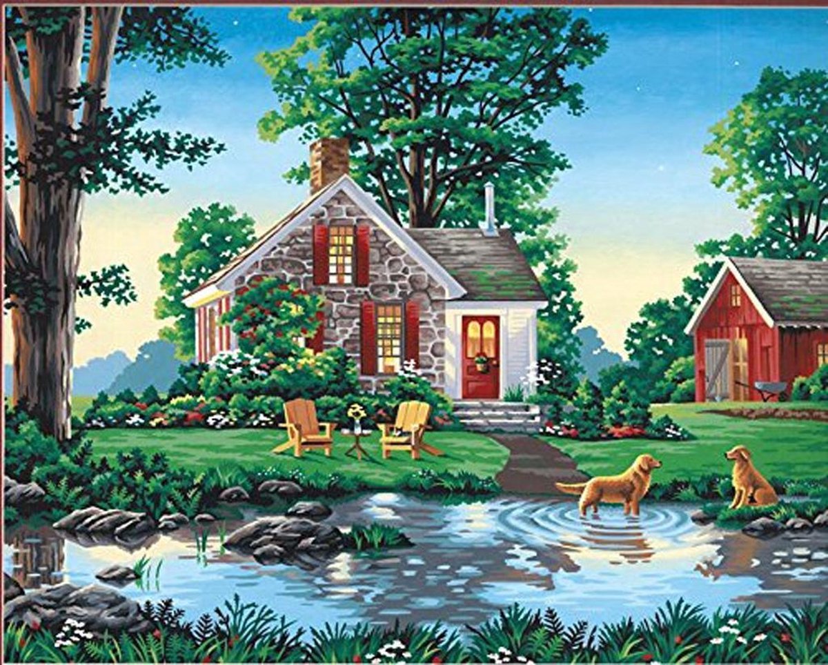 Vakantiehuisje met honden Schilderen op nummer. Je maakt Schilder op nummer schilderij in het formaat . Je ontvangt een los canvas met daarop enkel de lijnen en nummers. Door de genummerde vlakken in te schilderen met de juiste kleuren verf, creëer je je eigen schilderij. Door jou geschilderd met schilder op nummer! Dit schilderij wordt geleverd inclusief: -Canvas met lijnen en nummers -Voldoende potjes en kleuren acrylverf -Penseel. Schilderijen kunnen licht afwijken van de productafbeelding.