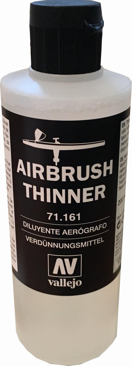 Vallejo Airbrush Thinner (200ml.) is ontwikkeld om je airbrush goed schoon te krijgen, maar kan eventueel ook gebruikt worden om verf te verdunnen voor het gebruik met een airbrush. Vallejo Air is vaak al dun genoeg, maar andere Acryl verven vaak niet. Deze verdunner kan echter ook gebruikt worden om de vloeibaarheid te verhogen en de droogtijd te verlengen.