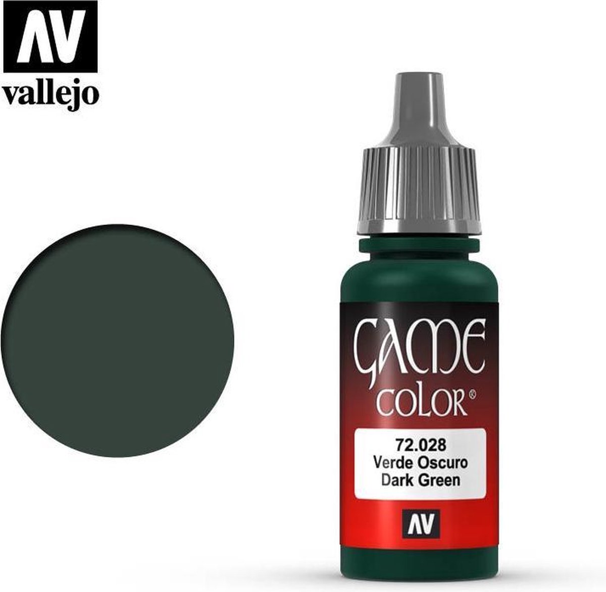 Vallejo Game Color Dark Green maakt deel uit van het Game Color programma van het merk Vallejo en is een donkergroene acrylverf in een 17ml. eyedropper potje.