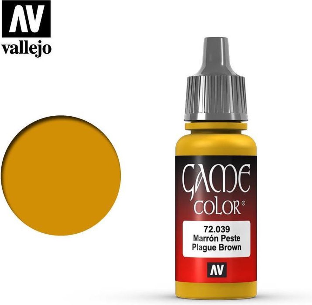 Vallejo Game Color Plague Brown (72039) is een pigmentrijke acrylverf met een lichtbruine kleur in een handig 17ml. eyedropper flesje dat deel uitmaakt van de Vallejo Game Color serie.