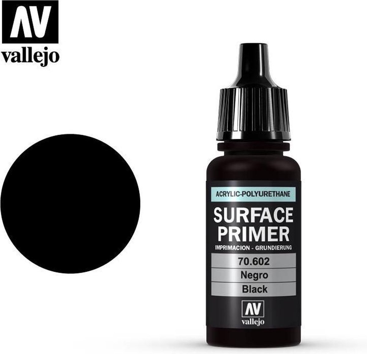 Surface Primer is available in a range of basic shades most frequently employed to prepare the surface of the model or miniature before starting the painting process. Primers can be applied on all surfaces, resin, PVC, brass, white metal or wood. The primer preserving even the smallest detail of a model, and improves the adherence of the colors applied on this base. It is recommended to apply the Primer in various layers; the product dries rapidly and forms a homogenous film of extraordinary strength and resistance within a few hours after application. Surface Primer can be used directly or diluted with Vallejo Airbrush Thinner of Flow Improver. The recommended compressor settings are around 15-20 PSI or 0.5 to 1 kg. For best maintenance of the airbrush, it is recommended to use the Vallejo Airbrush Cleaner. Safety: Surface Primer is not flammable, and does not contain solvents. Please see also certified safety information of the product on the Safety page. Packaging: Available in 17