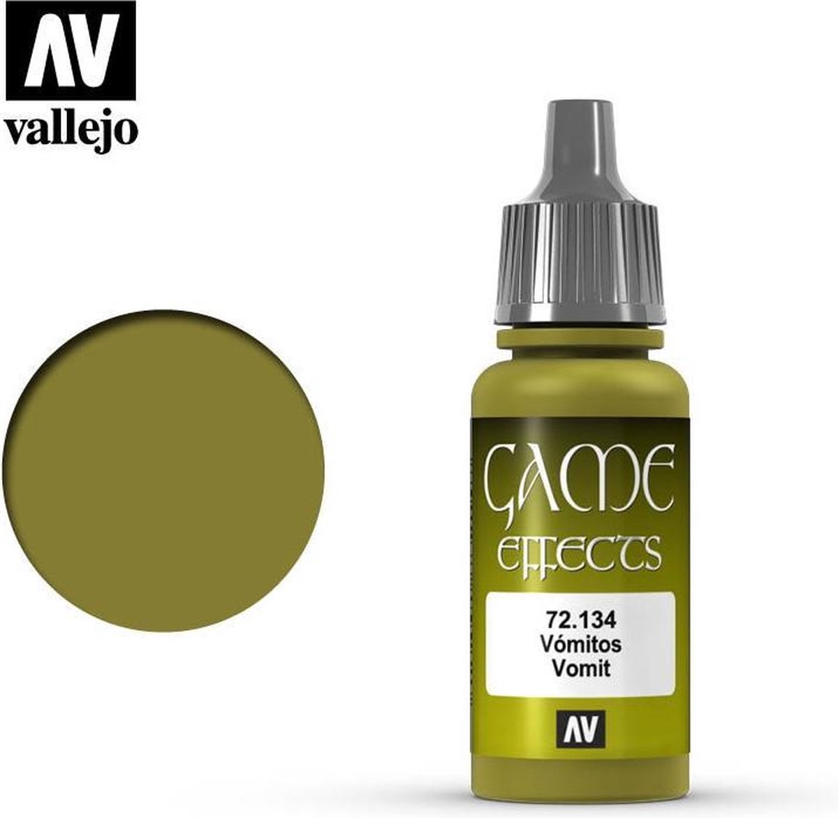 Vallejo Game Effects Vomit maakt deel uit van het Game Color programma van het merk Vallejo en is een groen glanzende acrylverf in een 17ml. eyedropper potje.