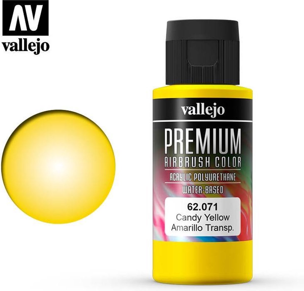 Premium is a range of acrylic colors specifically designed for airbrushing and for optimum adherence on surfaces such as fiberglass, polyethylene, polycarbonate, metal and Lexan. Premium has been formulated with permanent pigments and a new, extremely resistant hybrid resin of acrylic-polyurethane. The Premium range contains matt and opaque, transparent, metallic, and fluorescent colors, and includes the specific varnishes and auxiliary products of the product line. Premium is especially recommended for painting motorcycle helmets, fuel tanks, surfboards and similar surfaces exposed to hard wear, and resists impacts and cracking as well as direct exposure to heat. The Premium colors resist fuel residue proof (as used in RC) ofup to at least 35% Nitro. It is recommended to apply Premium in successive layers on previously primed surfaces. A few hours after application, the Premium colors will form a homogenous film of extraordinary strength and resistance. The recommended compressor