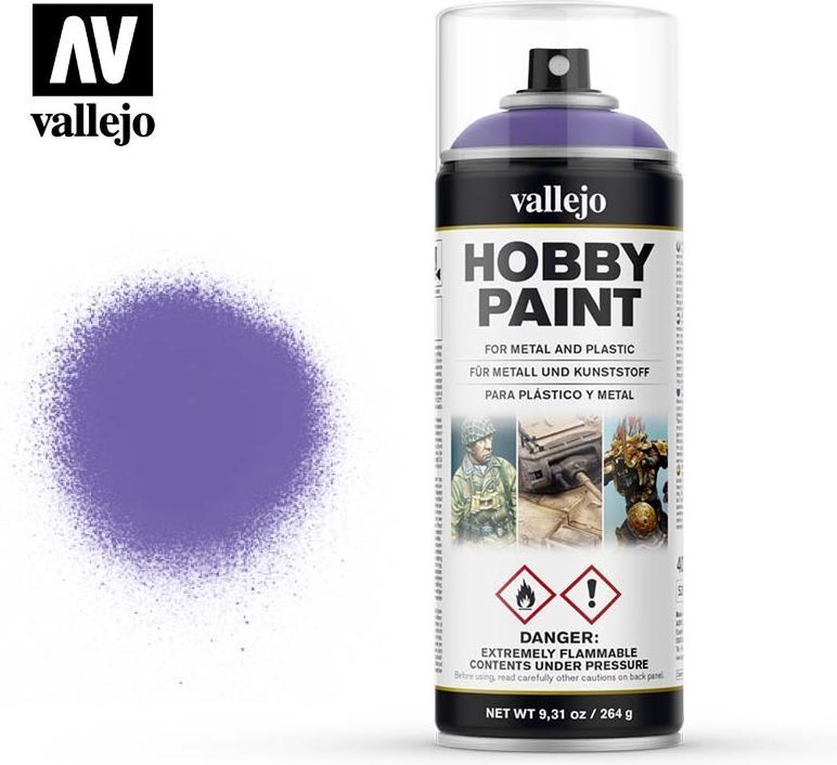 Vallejo Hobby Paint Alien Purple is een 400ml. spuitbus met paarse grondverf uit de Vallejo Hobby Paint serie die mat opdroogt en zelfnivellerend werkt. Het is speciaal ontwikkeld om te hechten op metaal, plastic en resin figuren en modellen. Het fijne pigment helpt de kleinste details te laten zien.