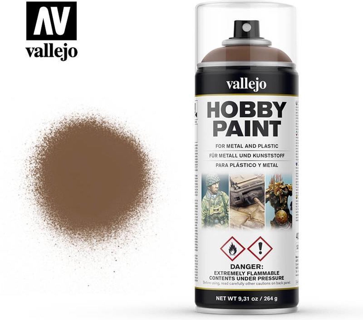 Vallejo Hobby Paint Beasty Brown is een 400ml. spuitbus met bruine grondverf uit de Vallejo Hobby Paint serie die mat opdroogt en zelfnivellerend werkt. Het is speciaal ontwikkeld om te hechten op metaal, plastic en resin figuren en modellen. Het fijne pigment helpt de kleinste details te laten zien.