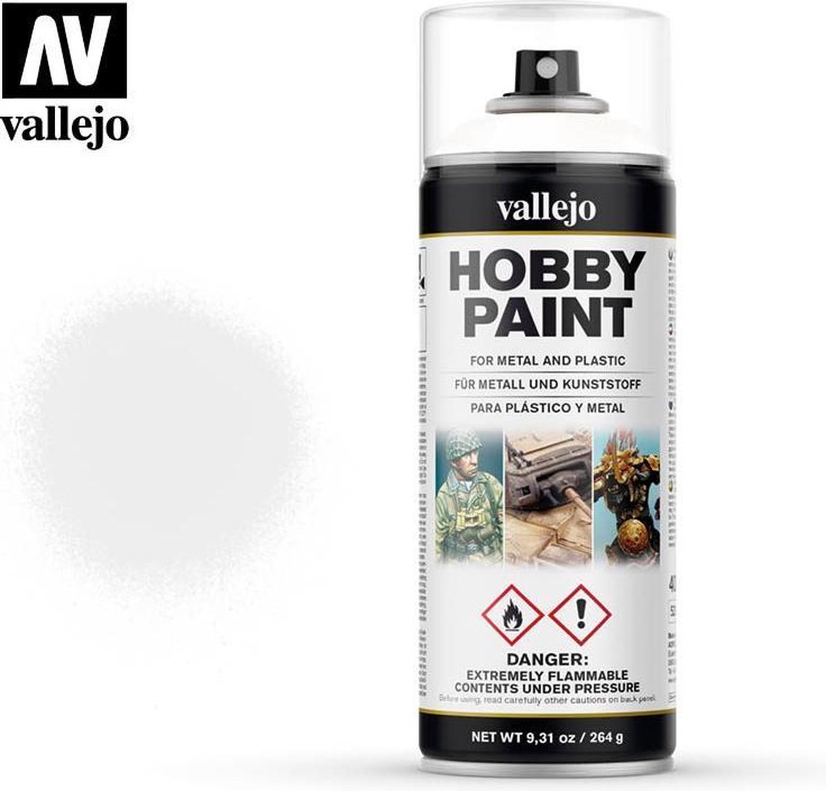 Deze Vallejo White Surface Primer is uitstekend geschikt als grondverf voor miniaturen, terrein en andere projecten. De primer bevat 400ml witte verf. Maak gebruik van de verbeterde spuitnozzle waarmee u de hoeveelheid dat u aanbrengt met veel meer gemak doseert. Bij het juiste gebruik zal de Vallejo Primer een zeer dunne laag van de ondercoating achterlaten op uw project. Door het sneldrogende karakter van de grondverf is het ideaal om over te schilderen. Pas op! Brandbaar. De gebruikte oplosmiddelen bevatten geen CFK of tolueen.