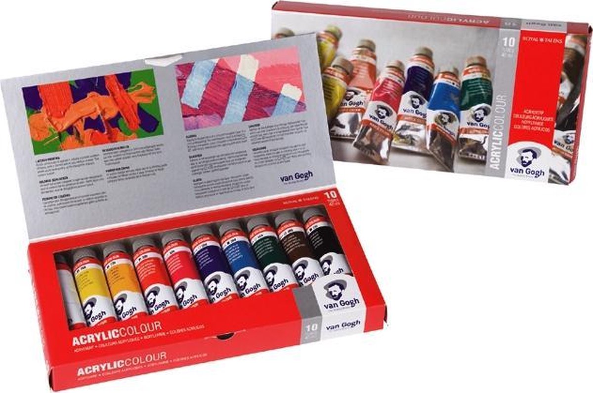Zoek je een pasteuze acrylverf die duidelijke penseelstreken geeft, dan is dit de verf die je zoekt. Deze uitgebreide set met 10 tubes 40 ml Van Gogh acrylverf is ideaal voor kunstschilders die hoge eisen stellen aan de kwaliteit van hun materialen. De kleuren zijn zeer krachtig en ook nog eens uitstekend lichtecht. Ook op lange termijn zullen ze hun oorspronkelijke intensiteit behouden. Van Gogh acrylverf is een hoogwaardige acrylverf die in alle opzichten voldoet aan de wensen van veeleisende kunstschilders.