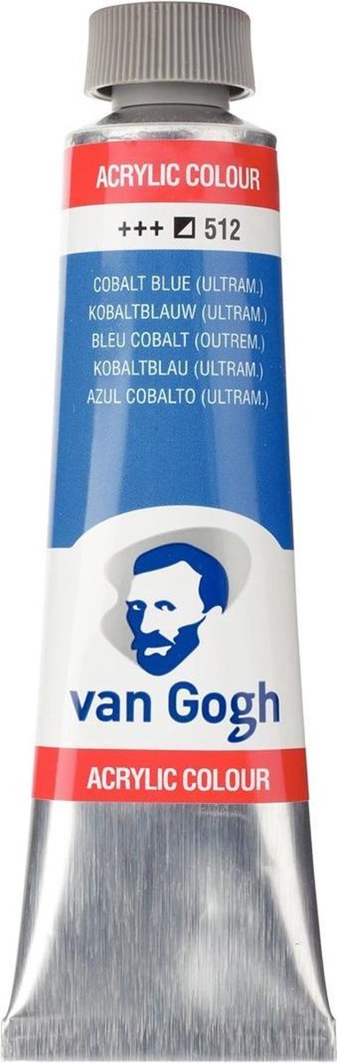 De acrylverf van Van Gogh wordt gemaakt met hoogwaardige pigmenten naar strenge Nederlandse kwaliteitsnormen. Deze acrylverf is geschikt voor de kunstenaar in opleiding en kan rechtstreeks uit de metalen tube of verdund met water worden gebruikt. Doordat de verf snel droogt, is het makkelijk om snel laag over laag te werken. Dankzij een hoog pigmentaandeel is deze dikkere verf krachtig en intens gekleurd; ideaal om met een penseel of paletmes te worden aangebracht. Van Gogh acrylverf is verkrijgbaar in 40 kleuren. Deze tube van 40 ml met Kobaltblauw ultramarijn 512 is samengesteld met PB29/PB15-pigment(en) en heeft een lichtechtheidsgraad van +++ (100+ jaar onder museumomstandigheden).