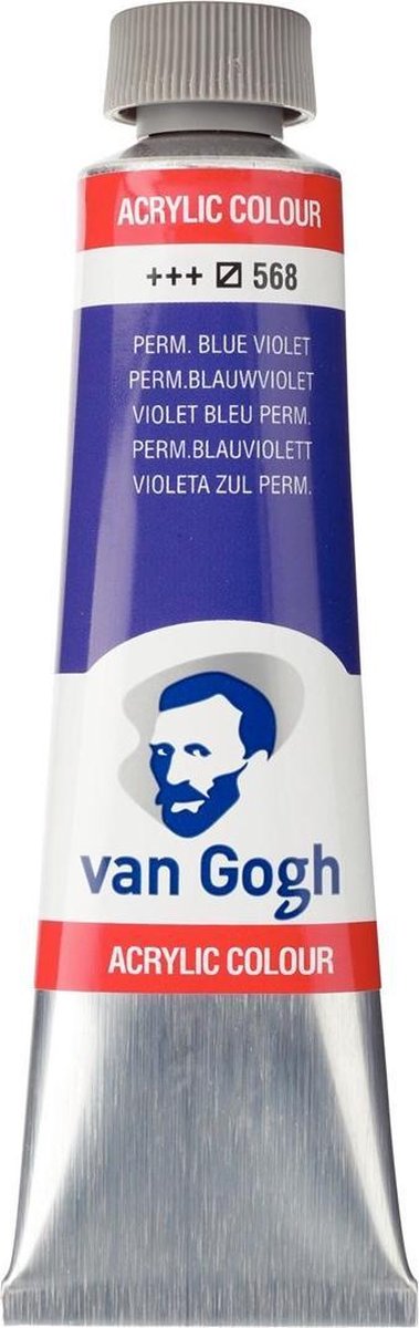 De acrylverf van Van Gogh wordt gemaakt met hoogwaardige pigmenten naar strenge Nederlandse kwaliteitsnormen. Deze acrylverf is geschikt voor de kunstenaar in opleiding en kan rechtstreeks uit de metalen tube of verdund met water worden gebruikt. Doordat de verf snel droogt, is het makkelijk om snel laag over laag te werken. Dankzij een hoog pigmentaandeel is deze dikkere verf krachtig en intens gekleurd; ideaal om met een penseel of paletmes te worden aangebracht. Van Gogh acrylverf is verkrijgbaar in 40 kleuren. Deze tube van 40 ml met Permanentblauwviolet 568 is samengesteld met PV23/PR122-pigment(en) en heeft een lichtechtheidsgraad van +++ (100+ jaar onder museumomstandigheden).