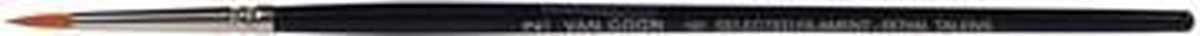 Techniek: aquarel- en plakkaatverf. Haar: goudkleurige polyestervezel. Strakke ronde puntvorm. Naadloze vernikkelde messing huls. Korte donkerblauw gelakte steel, lengte 155-200 mm. Strakke puntvorm voor uiteenlopende doeleinden. Ook een geschikt penseel voor detailleerwerk met Decorfinverven. Het haar is bekend onder de naam 'selected filament', met grote slijtvastheid en veerkracht. Elke penseelpunt wordt apart beschermd door een plastic kokertje.