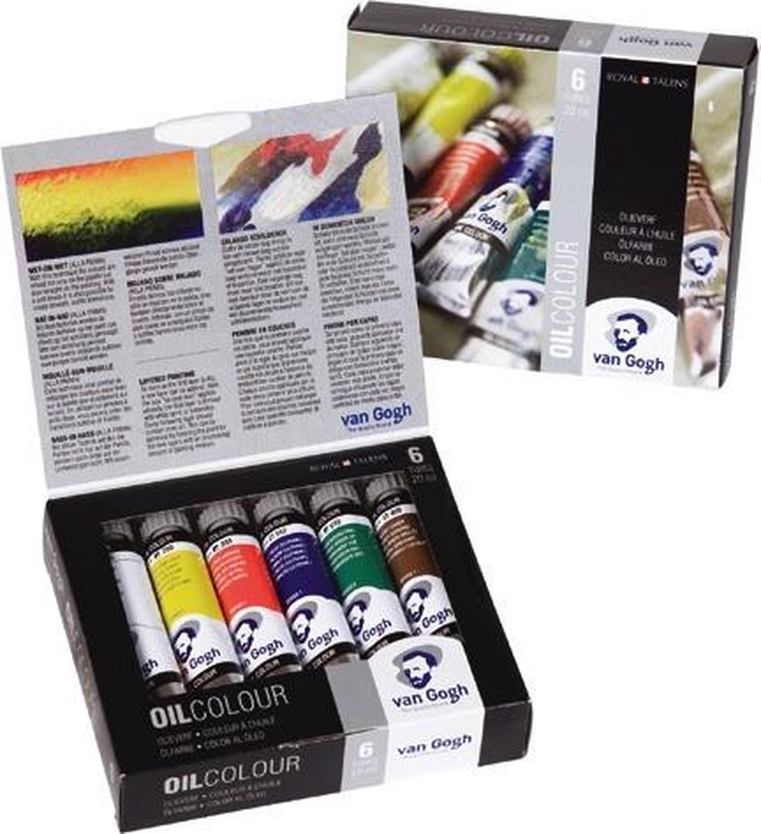 Praktische basisset met zes grote tubes met 20 ml Van Gogh olieverf waarmee je in verschillende olieverftechnieken kunt werken. Dankzij het hoge pigmentgehalte zijn de kleuren krachtig en briljant. Je kunt de kleuren makkelijk mengen en verwerken. De kleuren hebben een uniforme glansgraad en de lichtechtheid is goed tot uitstekend. Je bent hierdoor verzekerd van een prachtig resultaat en een langdurig kleurbehoud. Inhoud: 6 tubes Van Gogh olieverf 20 ml: Titaanwit, Azogeel licht, Azorood middel, Permanentgroen donker, Omber gebrand, Ivoorzwart.