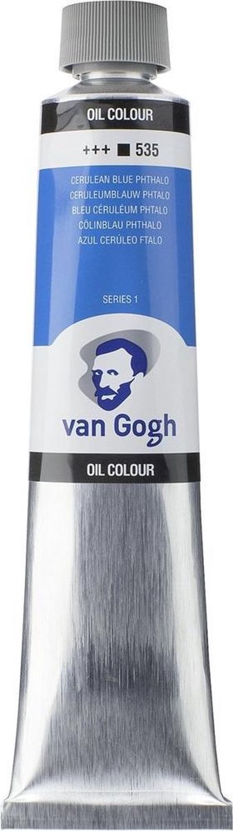 Als je op zoek bent naar betere olieverf, zit je met deze Van Gogh-collectie van Nederlandse bodem goed. Een boterige olie met uitstekende kleurkracht, een hoog pigmentaandeel voor intense kleuren en een gelijkmatige glans en dikte. Gemakkelijk te mengen en te verwerken. Deze olieverf is ideaal voor beginners, gevorderde studenten en actieve kunstenaars. Deze tube van 200 ml met dekkend Ceruleumblauw phtalo 535 is samengesteld met PB15/PW6-pigment(en) en heeft een lichtechtheidsgraad van +++ (100+ jaar onder museumomstandigheden). Serie 1.