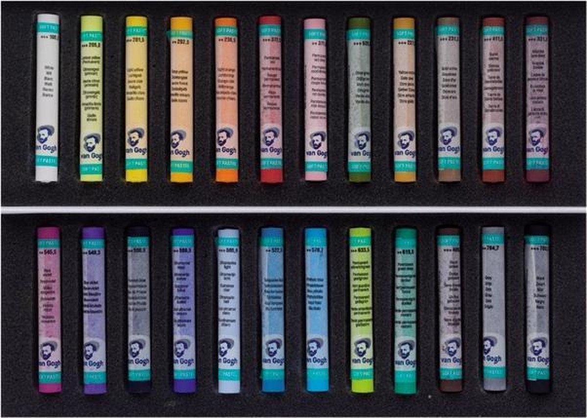 Uitgebreide set met 24 prachtige kleuren Van Gogh softpastels. Deze pastels zijn heel zacht, maar toch voldoende stevig, zodat ze niet snel afbrokkelen. Van Gogh softpastels hebben een slanke vorm waardoor ze heel geschikt zijn voor detailwerk. Als je ze in de breedte gebruikt, kun je er ook makkelijk grotere vlakken mee vullen. Van Gogh softpastels zijn zeer lichtecht en je werkstuk blijft dan ook jarenlang mooi. De pastels hebben een zeer goede kleurafgifte en de zuivere en briljante kleuren kun je moeiteloos op uiteenlopende ondergronden aanbrengen. De pastels zijn geschikt voor alle ondergronden met voldoende oppervlaktestructuur zoals papier, karton, steen, asfalt en hout.