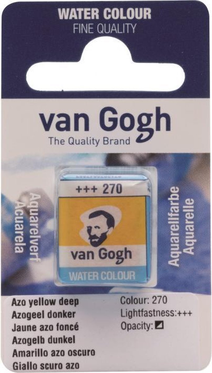Van Gogh aquarelverf is een verf met een hoge kleurkracht. Alle kleuren hebben een hoge graad van lichtechtheid. De kleuren zijn door de zuiverheid van de verf gemakkelijk te mengen. Met veel water en de juiste penselen kun je de kleuren mengen en mooie verwassingen maken met levendige kleuren. De verf zit in een kunststof blokje en kan los gebruikt worden, maar past ook in de lege opbergdozen. Het assortiment is sinds kort uitgebreid en bestaat nu uit 72 kleuren. Van 11 kleuren is de receptuur verbeterd.